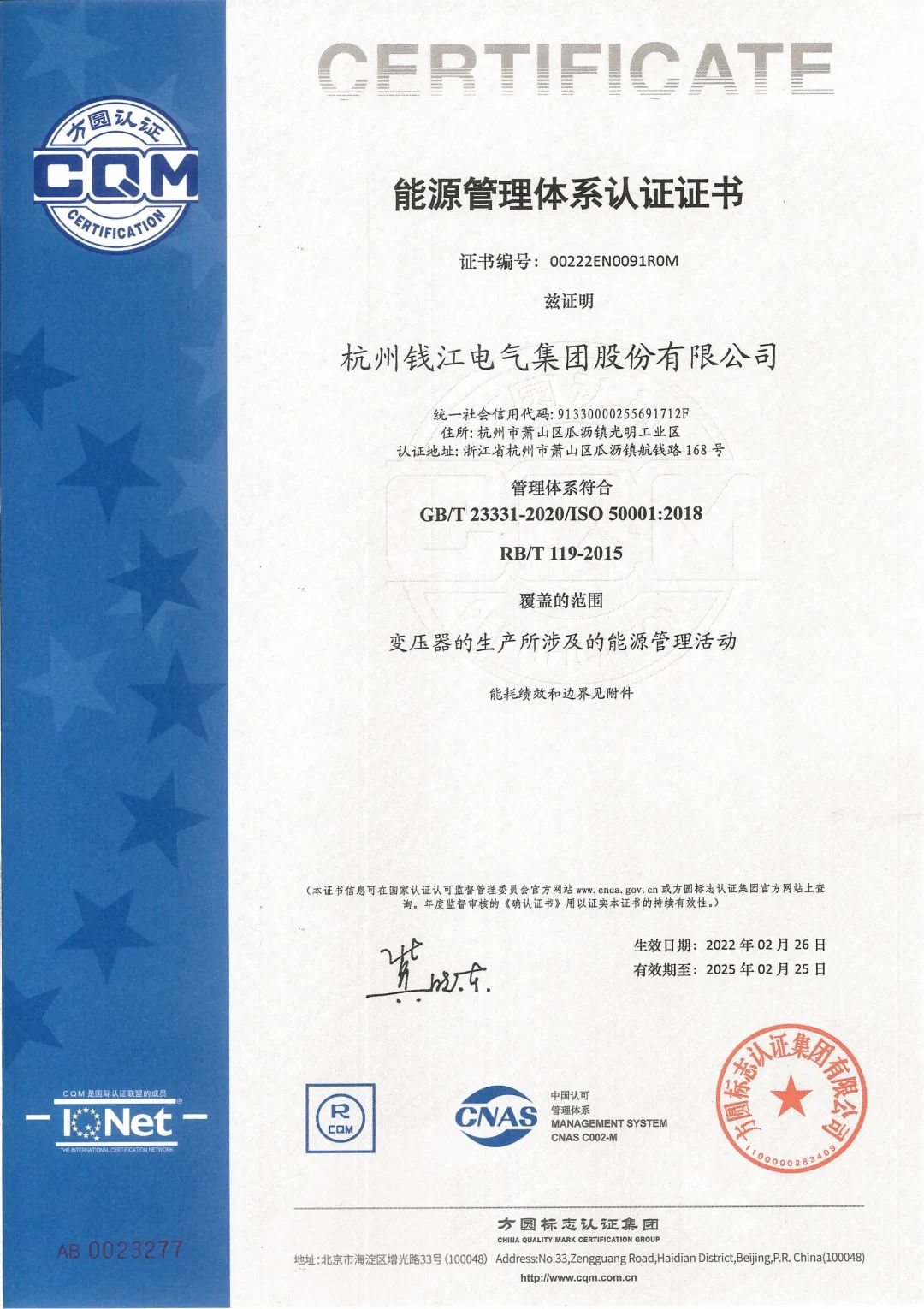 公司于2月份獲得由中國認(rèn)可管理體系及方圓標(biāo)志認(rèn)證頒發(fā)的能源管理體系認(rèn)證證書(證書編號(hào)為:00222EN0091R0M)。標(biāo)志著我公司符合GB/T 23331-2020/ISO 50001:2018 《能源管理體系 要求》和RB/T 119-2015《能源管理體系 機(jī)械制造企業(yè)認(rèn)證要求》 標(biāo)準(zhǔn)的要求。能源管理體系將在我公司正式啟動(dòng)運(yùn)行。