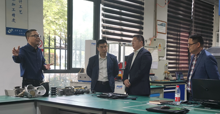 4月29日上午,集團(tuán)總裁項(xiàng)勇隨瓜瀝鎮(zhèn)黨委書記朱國軍等鎮(zhèn)企相關(guān)領(lǐng)導(dǎo)一起,到蕭山技師學(xué)院參觀考察。