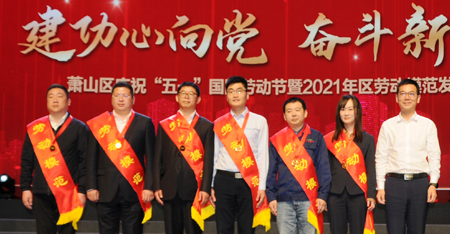 4月29日晚,在蕭山區(qū)舉行的“建功心向黨,奮斗新蕭山”慶祝“五一”國際勞動(dòng)節(jié)暨2021年區(qū)勞動(dòng)模范發(fā)布會(huì)上,集團(tuán)總裁項(xiàng)勇出席發(fā)布會(huì),并榮獲“蕭山區(qū)勞動(dòng)模范”稱號(hào)。